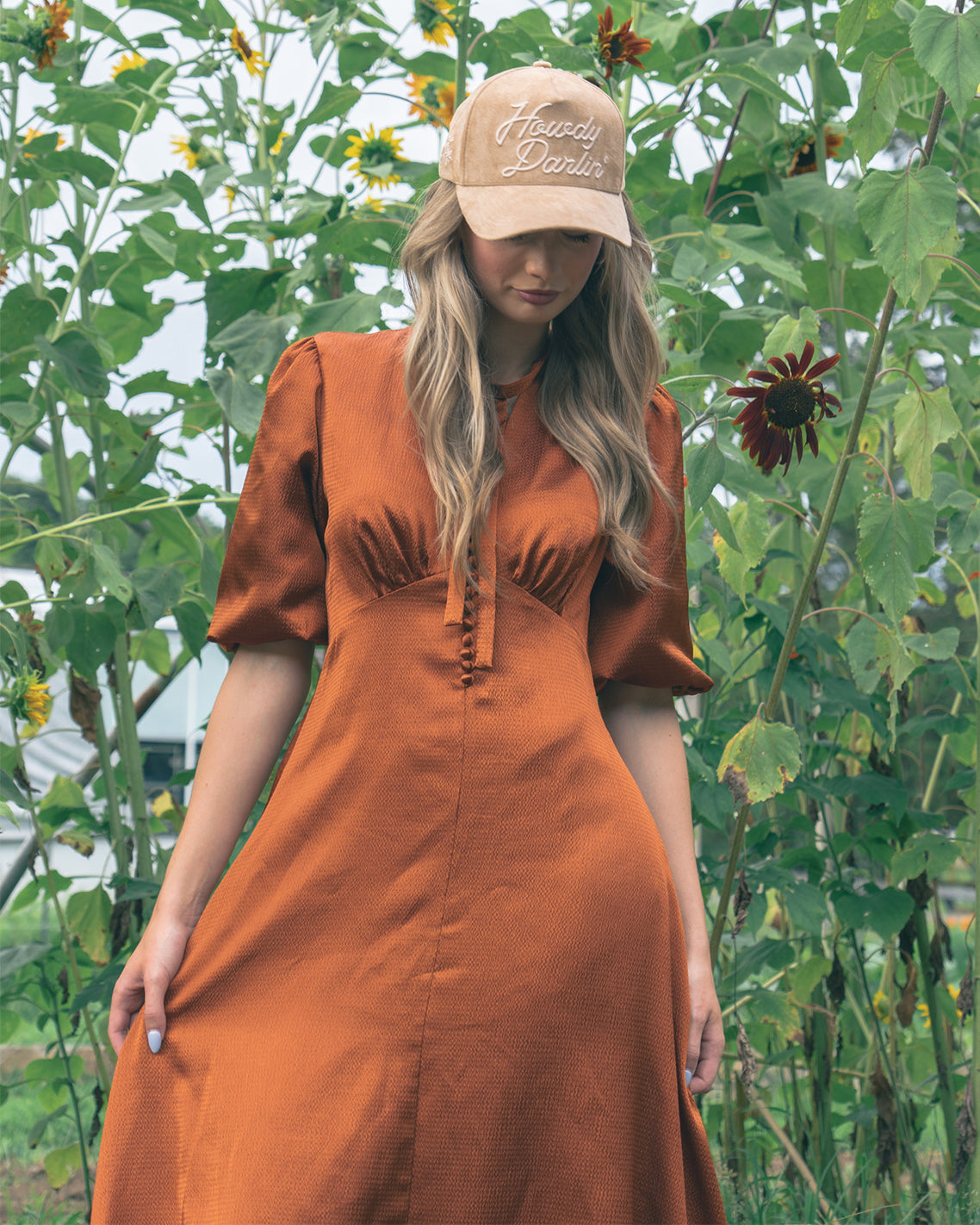 This one-of-a-kind snapback is where Southern charm meets Western edge. Designed in collaboration with Rustler Hat Co., the “Howdy Darlin’” hat features a soft script front, premium suede, and a custom structured fit for everyday wear. From tailgates to town squares, this hat tops off any outfit with laid-back ease and a wink of personality. Designed in Nashville and finished with signature Draper James charm, it’s the ultimate blend of heritage style and modern flair.