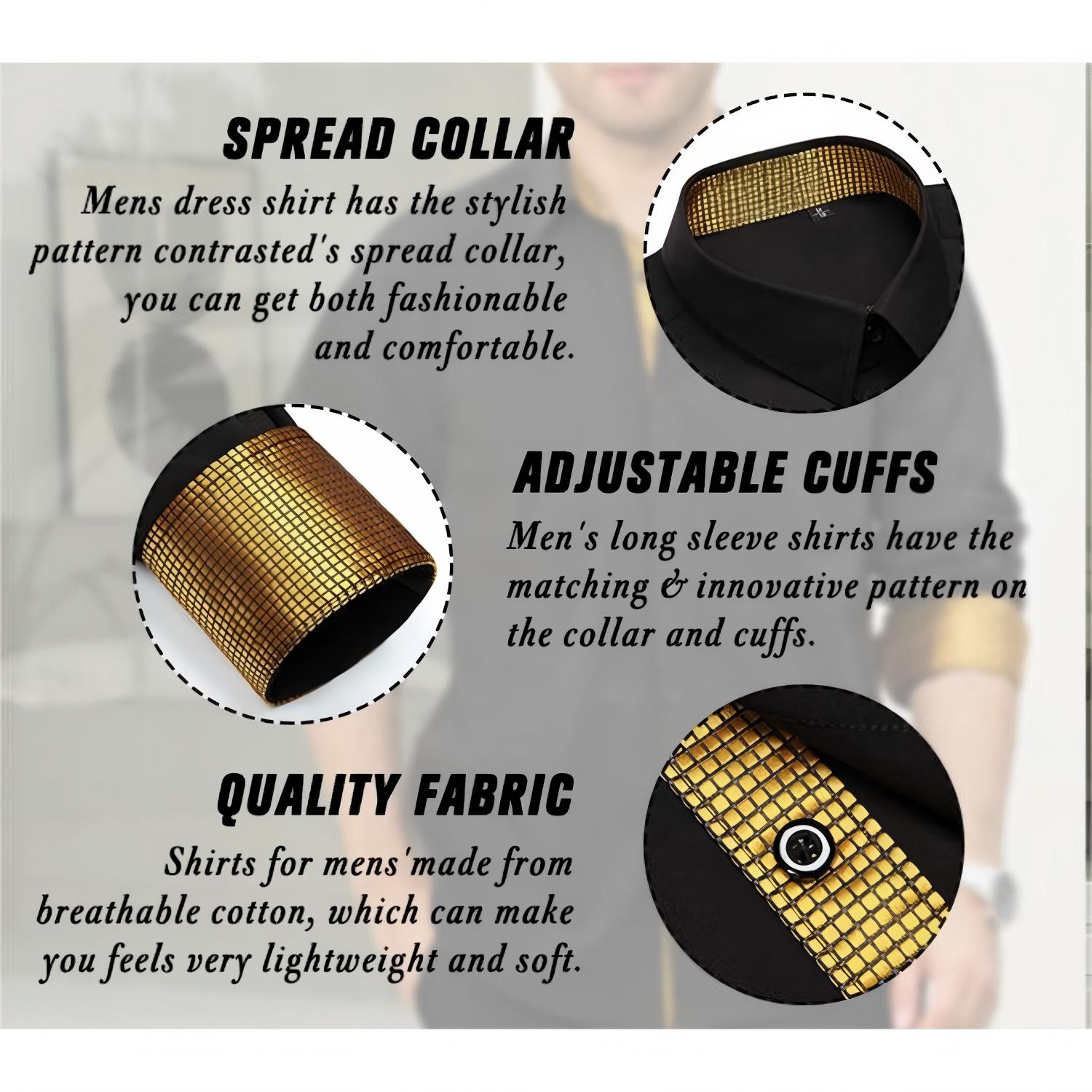 • Men's Black Gold Splicing Dress Shirt For Office Wear