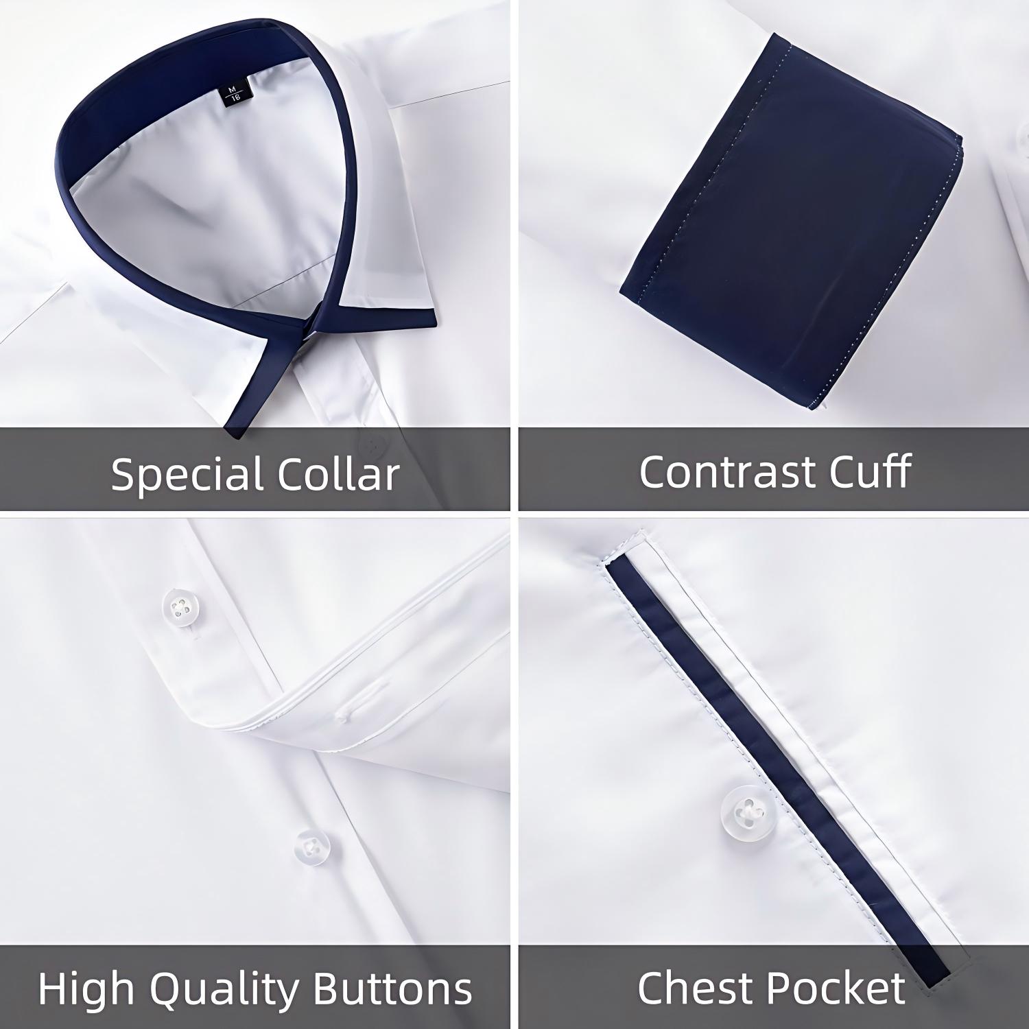 • Men's White Dress Shirt with Contrast Collar for Casual