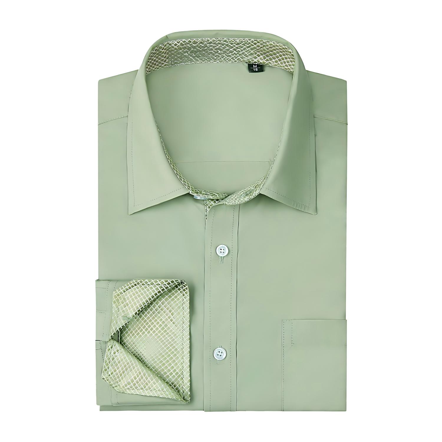 • Men's Sage Green Splicing Dress Shirt For Office Wear